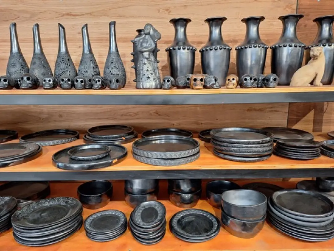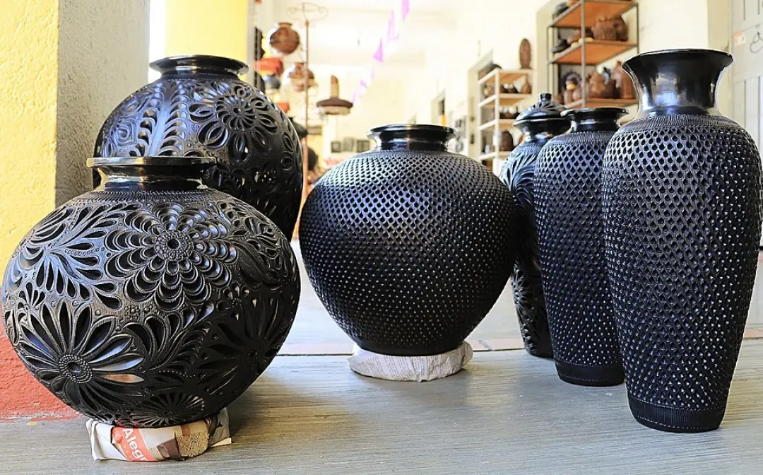 Artesanía Barro NegroEl barro negro es considerado uno de los más populares y rigurosos estilos de alfarería en México. Las primeras piezas de este material fueron elaboradas en el periodo de Monte Albán en tonos grisáceos mates. También se encontraron vestigios de este material de uso doméstico en la cultura zapoteca y mixteca de los Valles Centrales, que tenían más resistencia. A partir del siglo XX la finalidad del barro negro pasó a ser artística y muchos artesanos comenzaron a elaborar piezas novedosas con diferentes cortes y formas, así como más brillosas por medio de técnicas de pulido y bruñido.